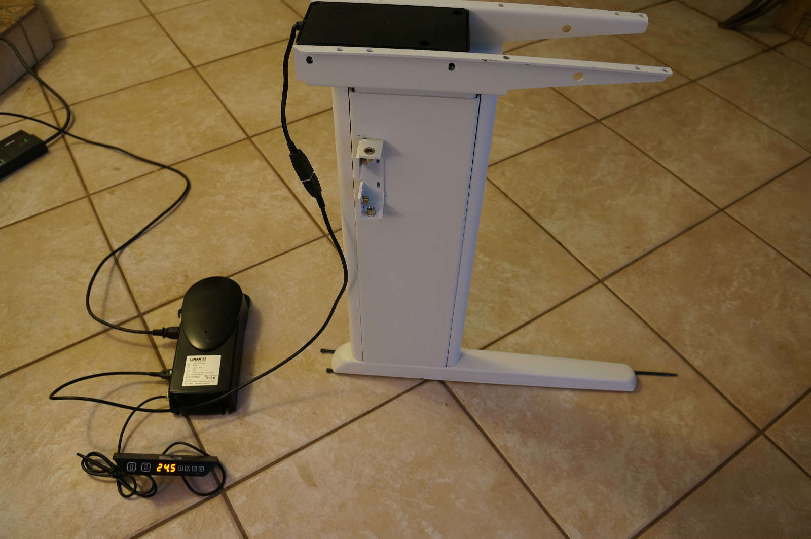 | Legs: | Linak Deskline Lifting Column Linear Actuator I found the parts on ebay ($546 + $139 shipping) Distance between legs: 54" Height 25.5" to 41.5"