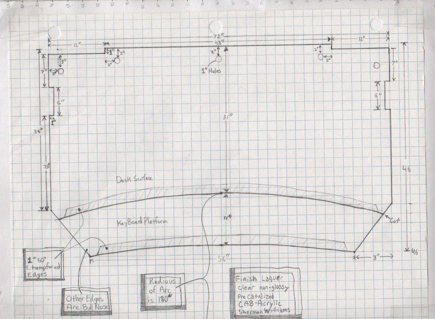 First draw lines and arch. For the arc I had to be creative: |